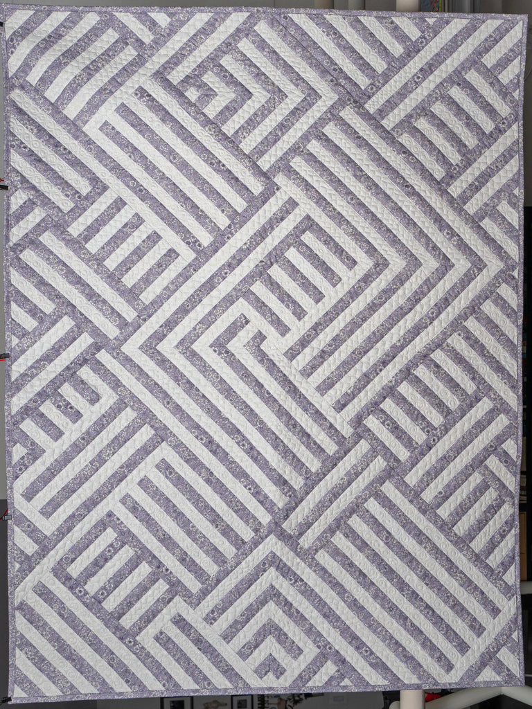 When brainstorming designs, I wanted to create something timeless. Block-based patterns are nice, but I just didn't picture that kind of quilt on Peter's recliner. I wanted something with depth and movement. Something that made you stop and stare. I love geometry and playing lines and shapes this was a fun challenge for me!