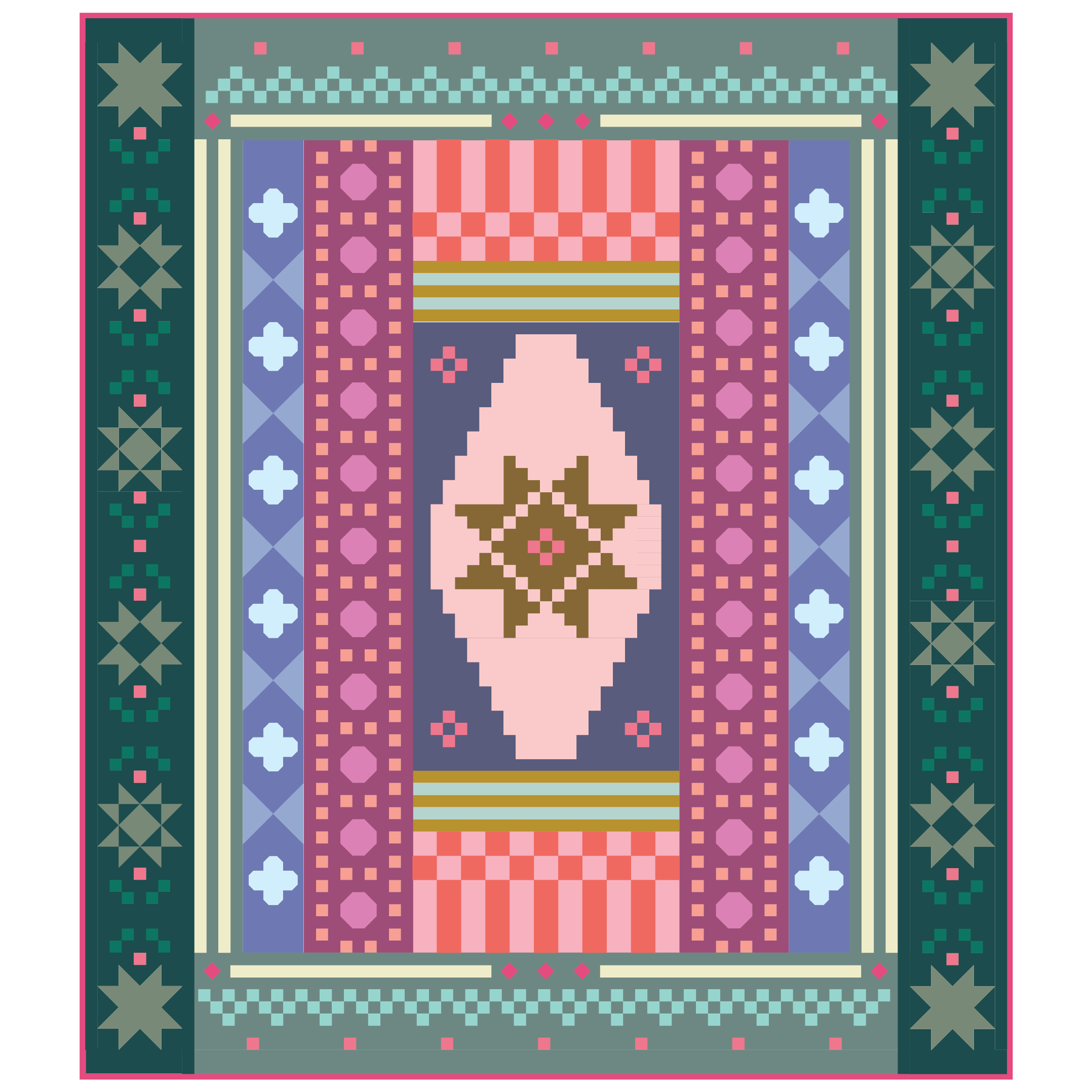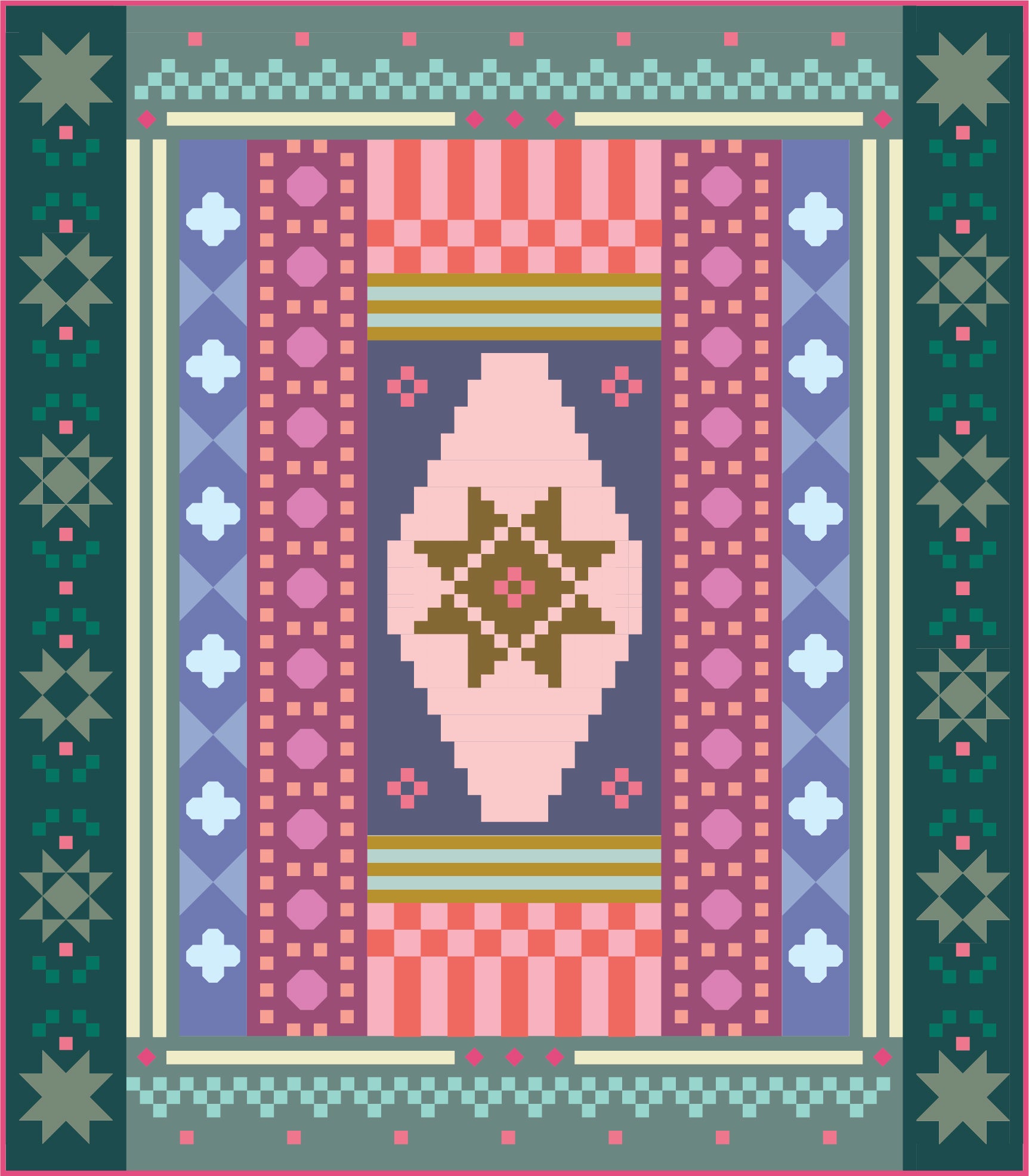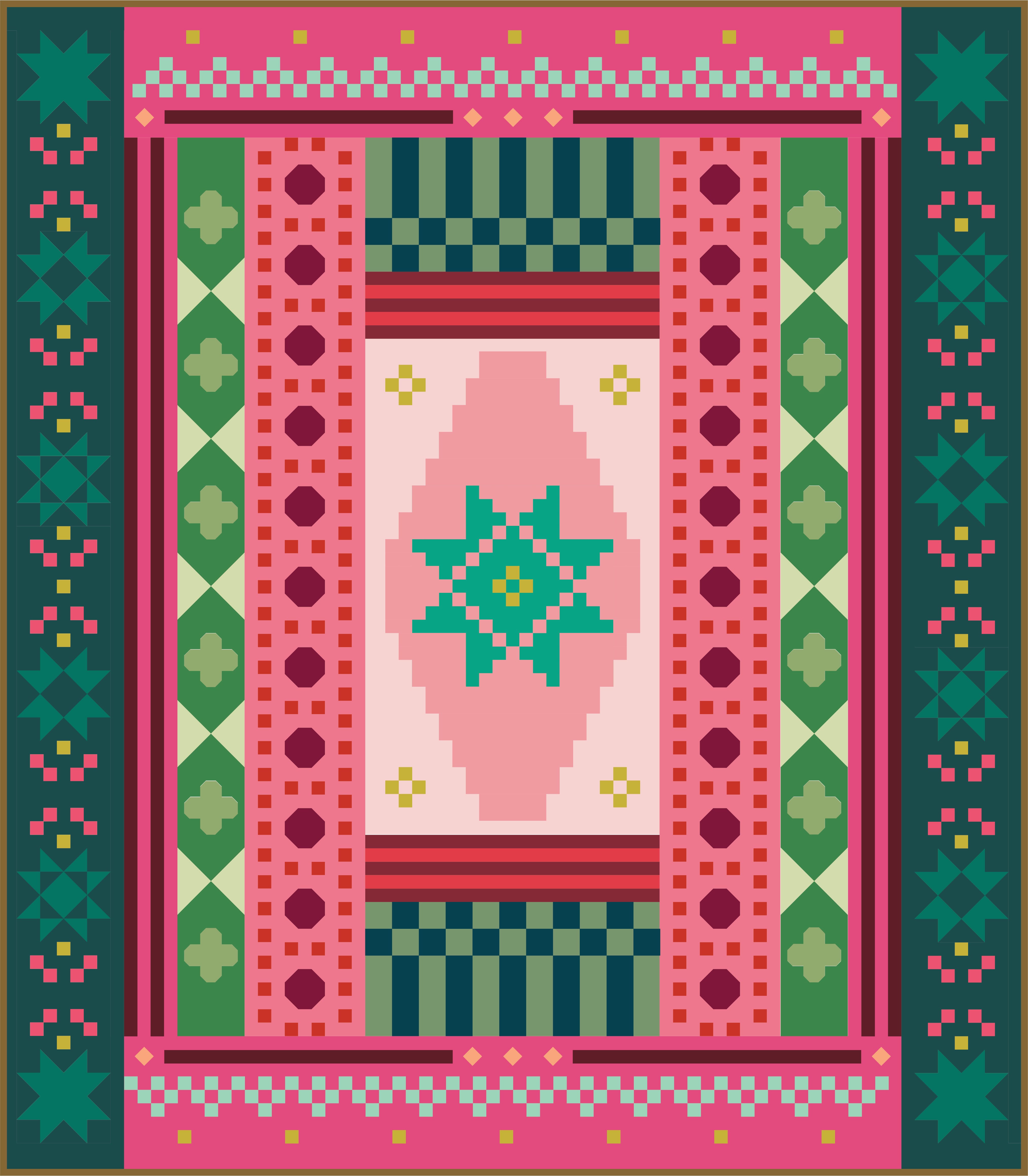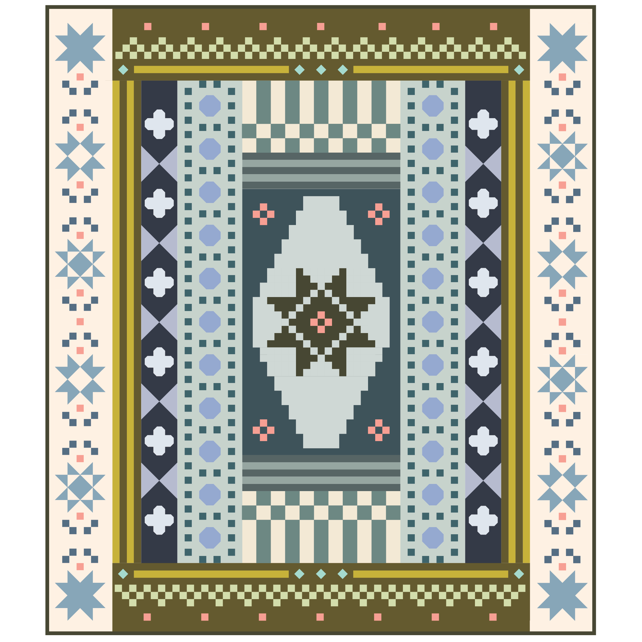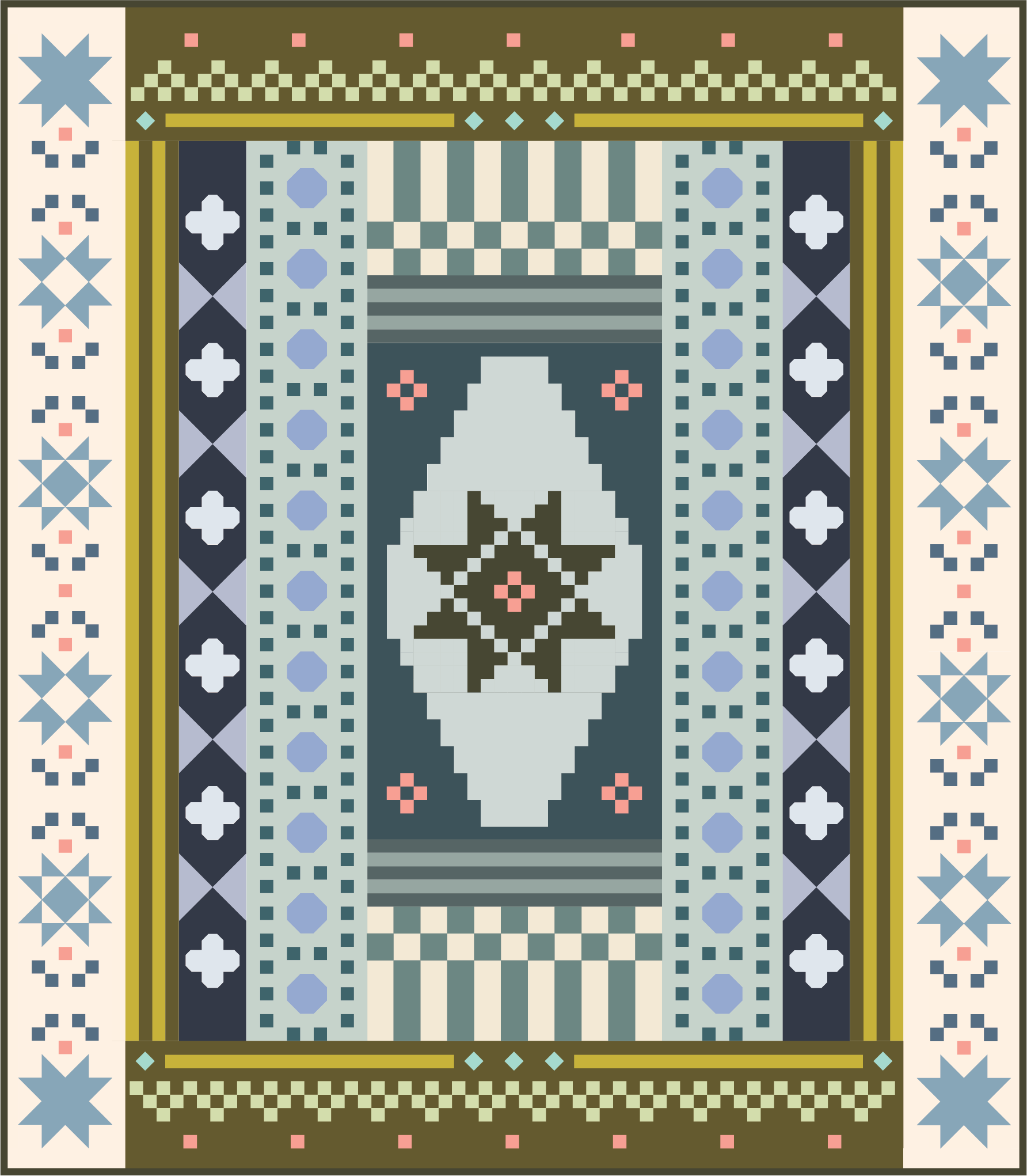 - MONTH 1 ◇ FEBRUARY: Planning, Checkerboard, Stripe + Diamond-in-a-Square blocks